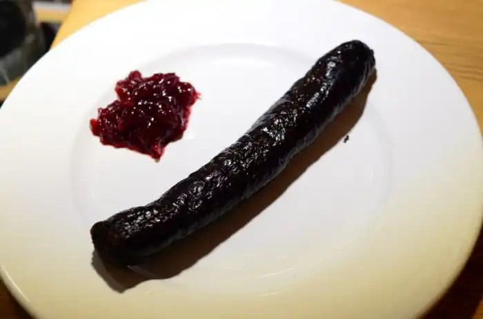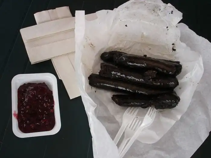 Вид весьма несъедобный, но все таки это едят. Кровяные сосиски в натуральной оболочке.