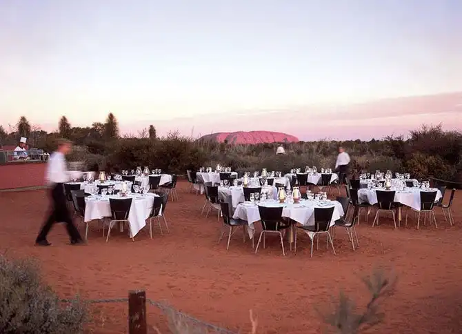 В ресторане «Звуки тишины» вы можете пообедать под тенью пустынной ночи. Сначала вам подадут канапе и охлажденное игристое вино на смотровой площадке с видом на Национальный парк Улуру -Ката Джута. Шведский стол предлагает такие традиционные местные блюда как мясо крокодилов, кенгуру, рыбы барамунди и блюда из Квандонга — дикорастущих растений.