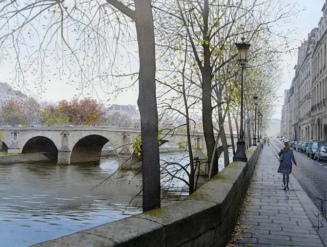 Родившийся в Париже художник Тьерри Дюваль (Thierry Duval) много путешествовал. Отсюда и наличие целых серий картин «по географическому признаку». Тем не менее, любимым местом автора был и остается Париж. Львиная доля работ посвящена именно городу влюбленных. Дюваль пишет картины исключительно акварелью. При этом у него есть своя собственная техника многослойного нанесения краски, что позволяет создавать картины практически с гиперреалистичной детализацией.