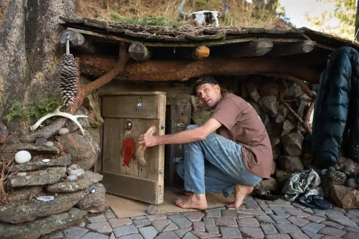 Присев на корточки, Дэн Прайс забирается в свой дом – в “Нору Хоббита”, как он его называет. Нора – потому что дом сделан самим Дэном внутри холма, с помощью древесных отходов. «Хоббит» живёт в городке Джозеф, что на северо-востоке штата Орегон. На всю постройку ушло всего лишь 75 долларов, большая часть из которых потрачена на скобы и строительный наполнитель. Внутри – комнатка высотой в 1,3 метра с покатым потолком. «Всё, что мне нужно – это еда, одежда и крыша над головой», – говорит Прайс, который живёт всего на пять тысяч долларов в год. Такой уклад жизни, со слов самого Дэна, избавил его от постоянной заботы о деньгах и работе.