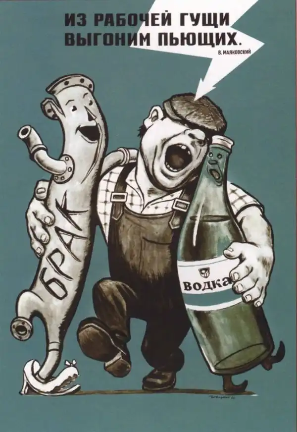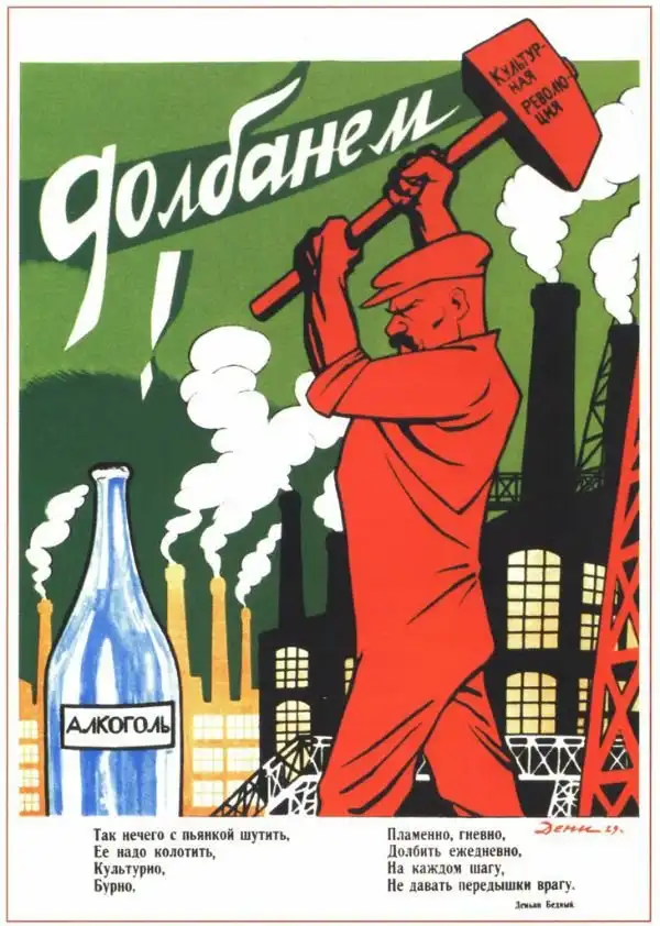 В СССР всерьез боролись с пьянством. Особенно в эпоху культурной революции. Употребление алкоголя резко порицалось, и пропагандистская машина клепала антиалкогольные плакаты один за одним.