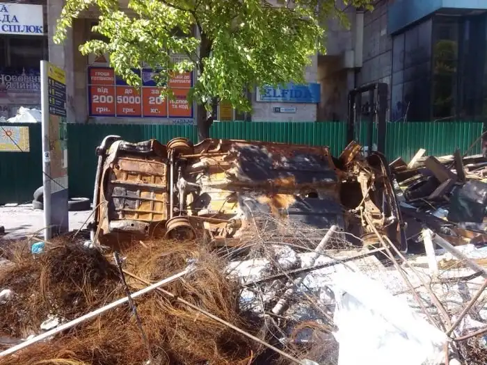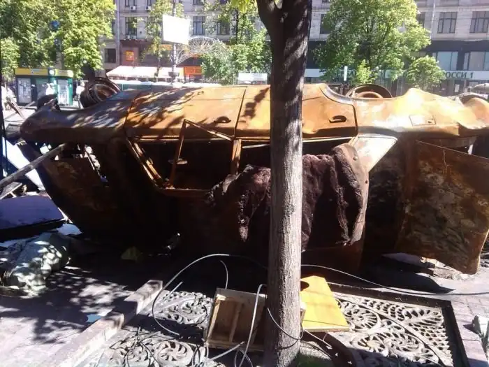 На майдане стоит сгоревший автомобиль взятый в кредит у Приват-Банка одним из героев \«евромайдана\».