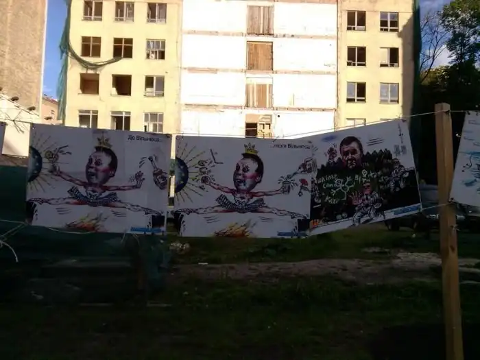 Могилка посреди города. В целом, сам город довольно чистый, \«Мариинка\» в порядке, на евромайдане свалка из мусора и людей.