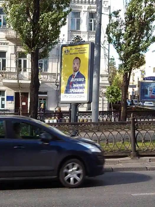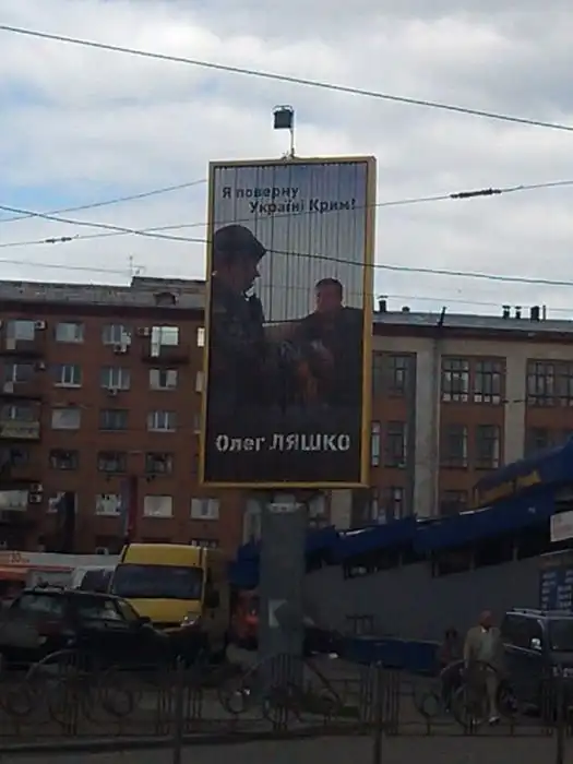 Покидая Киев, город прощается плакатом Ляшко, который опять грозиться вернуть Крым.