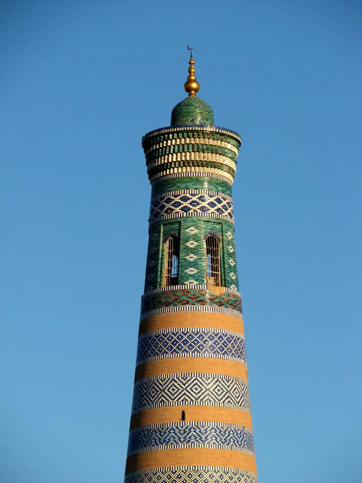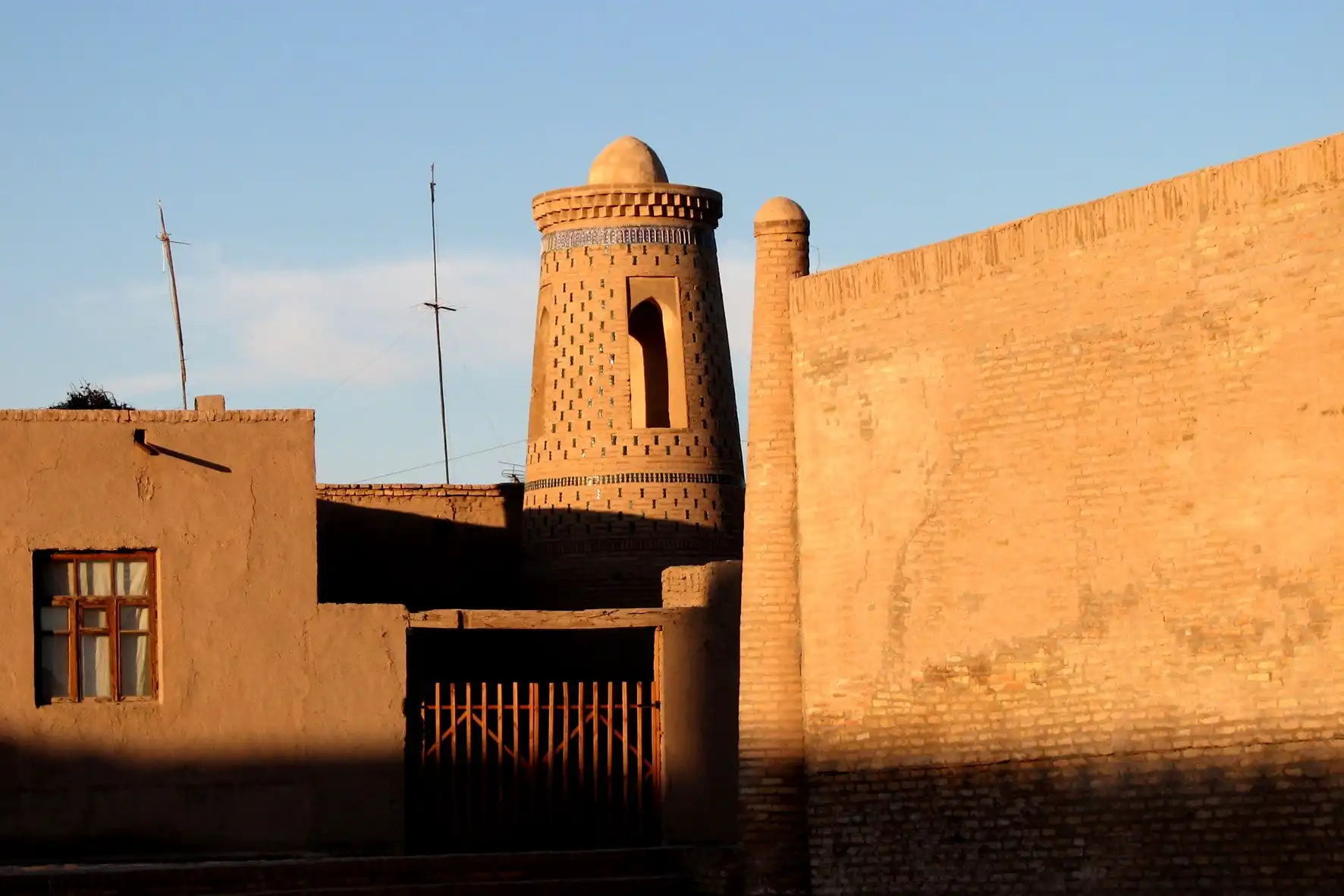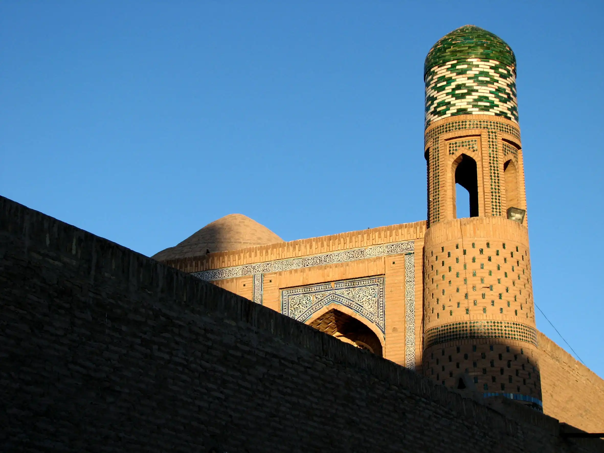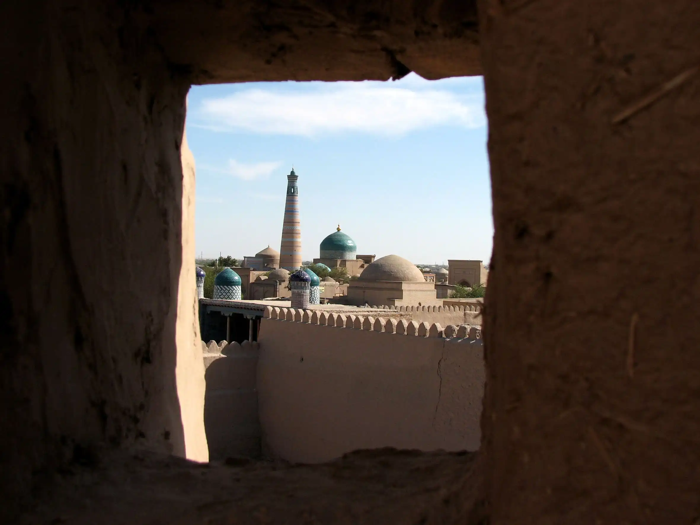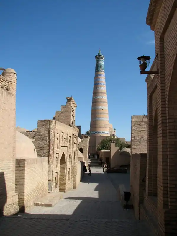 один из немногих сохранившихся практически в первозданном виде древних городов Востока. Хива славится своими изразцами тончайшей работы, секреты изготовления которых давно утеряны, резными деревянными дверями и колоннами, медресе и минаретами, очарованием тех времён, когда по улочкам старого города как обычные люди ходили величайшие мыслители и учёные Земли.