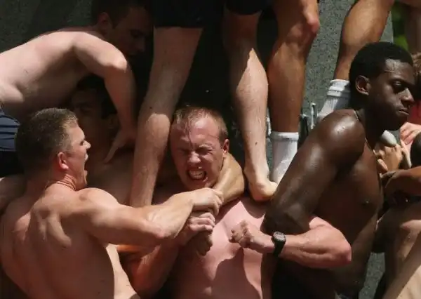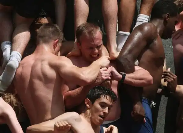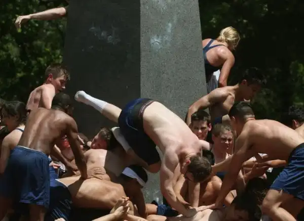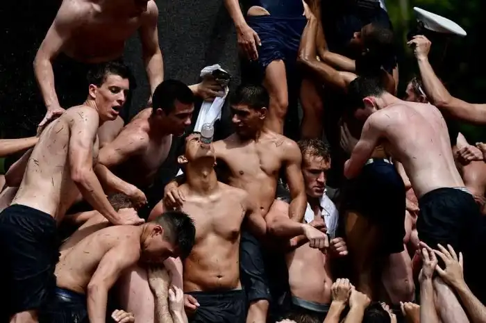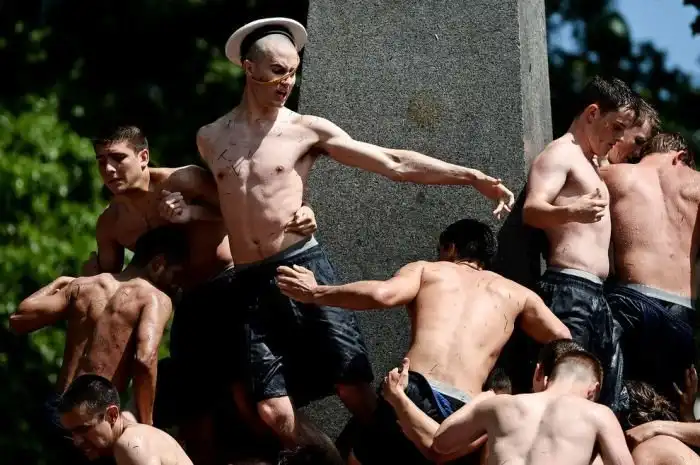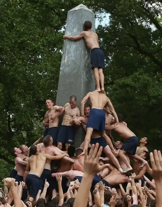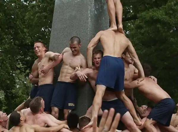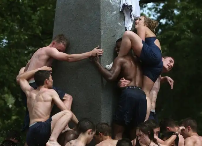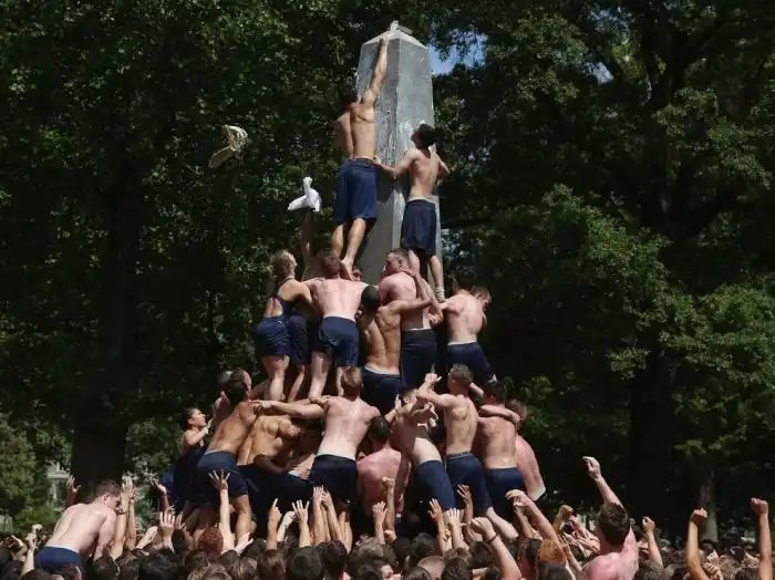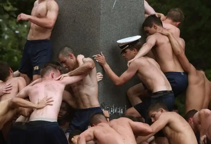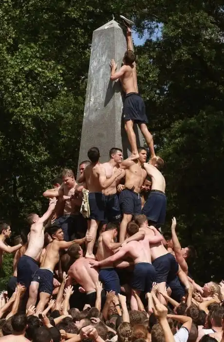 В военно-морской академии США, расположенной в Аннаполисе, есть странная традиция: первокурсники раздеваются до трусов и пытаются закинуть на верхушку стелы фуражку старшекурсников.