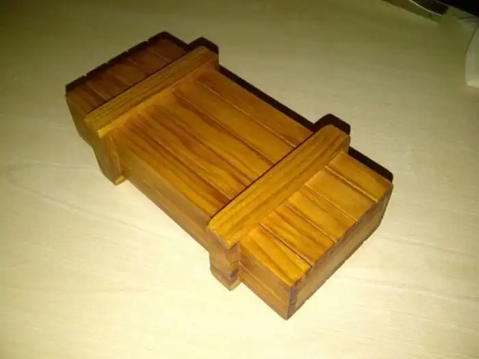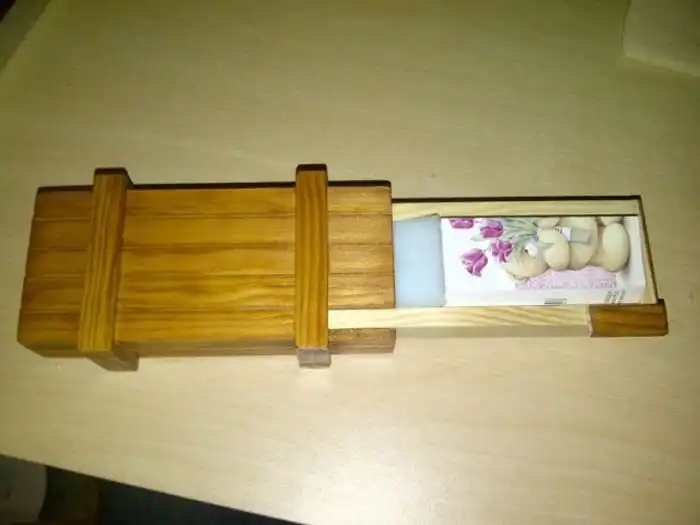 Далее он поместил кулон в деревянную коробку