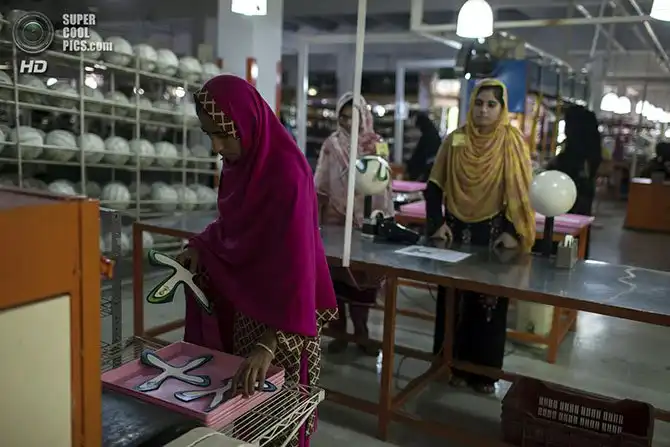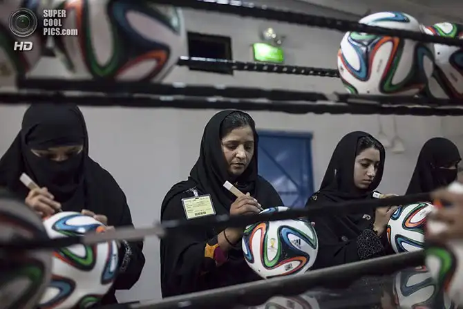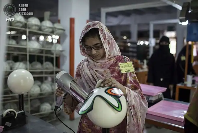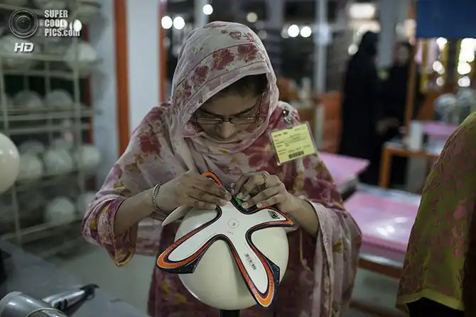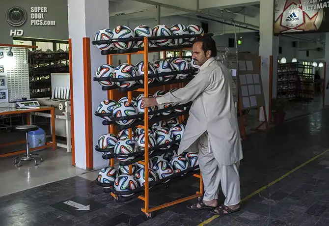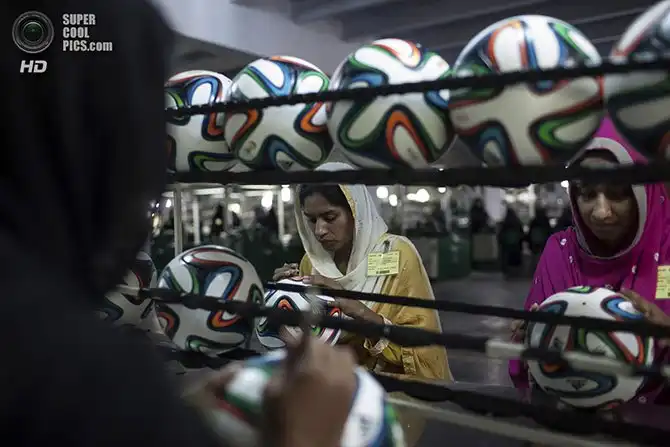 На одной из фабрик в пакистанском городе Сиялкот полным ходом идёт производство официальных мячей чемпионата мира по футболу, который стартует в Бразилии через пару недель, 12 июня. Производством занимается давний партнёр Adidas, пакистанская компания Forward Sports.