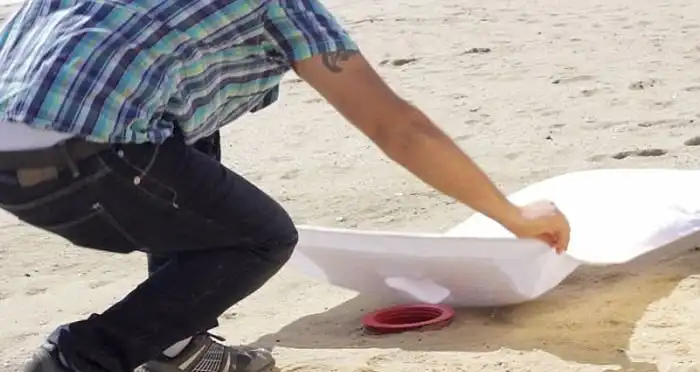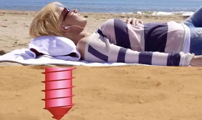 Этот необычный "бур" имеет закрывающуюся внутреннюю часть, куда вы можете сложить свои ценные вещи или, например, свой мобильный телефон, чтобы защитить их от песка и солнца. Очень удобно, кстати. Ведь так?