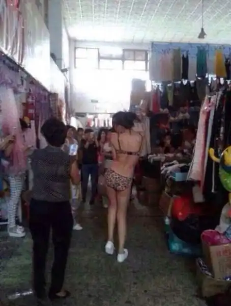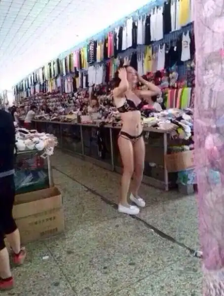 Чтобы увеличить продажи, хорошая идея - показать товар лицом. Именно так и решила поступить продавщица нижнего белья на рынке в городе Таншань, провинция Хэбэй. Возомнив себя ангелом Victoria’s Secret, она начала примерять на себя различные комплекты и красоваться перед потенциальными покупателями.