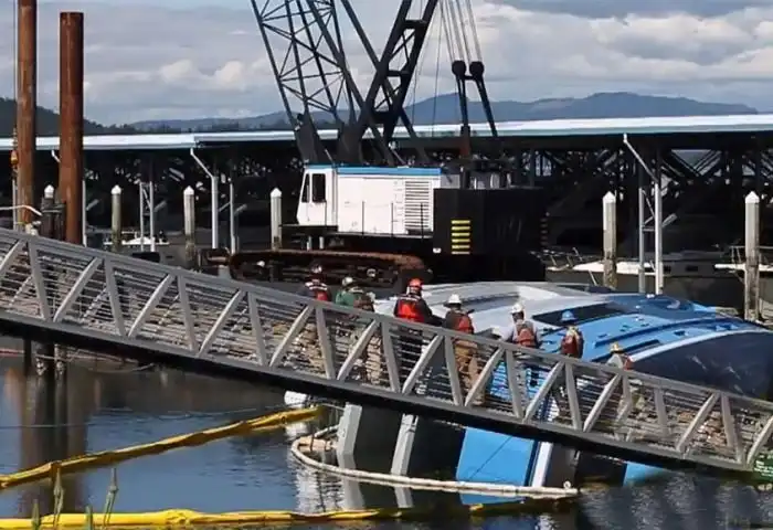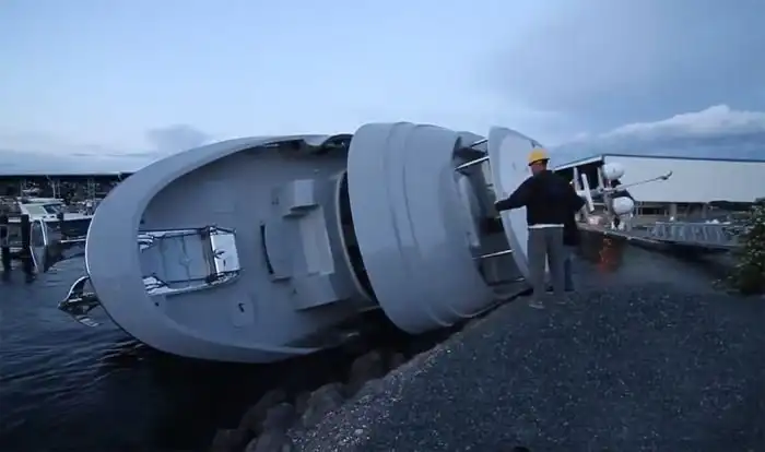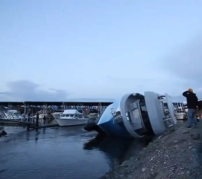 На одном из судостроительных заводов в американском городе Анакортес произошел настоящий эпик фэйл, которого уж точно никто не ждал. Все дело в том, что во время первого спуска на воду шикарной яхты стоимостью в 6 миллионов долларов, что-то пошло совсем не так, как планировалось. Яхта завалилась на бок и пошла ко дну, когда вода заполнила трюмы.
