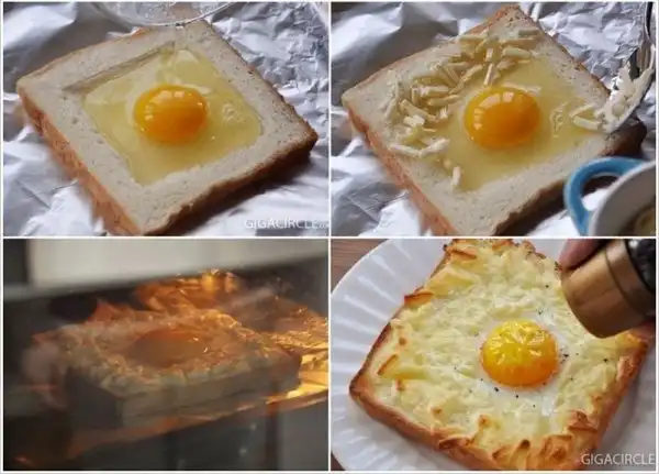 Залить туда яйцо, насыпать сыра (или чего хотите, можно ветчину!), Поставить в духовку, посолить-поперчить, все.