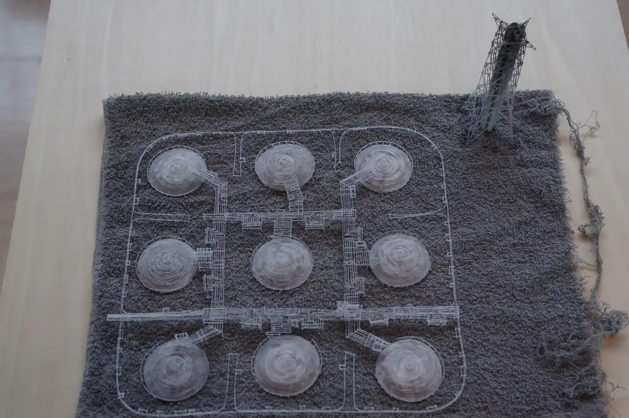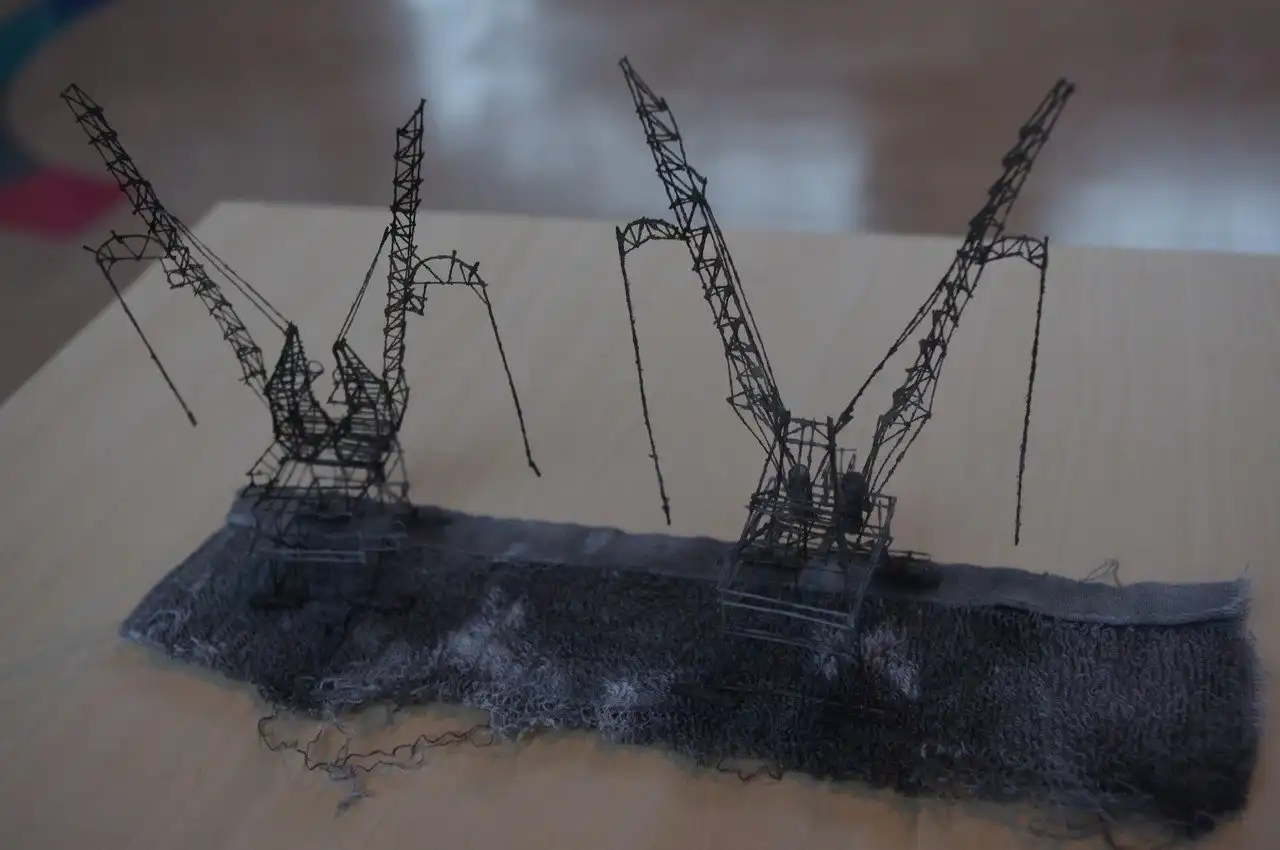 Художник из Хиросимы, создал целую серию работ специально для открывшейся в городе Кавасаки выставки «Out of Disorder». Небольшие миниатюрные сцены демонстрируют зрителю уменьшенные копии нефтеперерабатывающих заводов, электростанций и прочих промышленных объектов. Помимо выше перечисленных материалов, автор также использовал человеческие волосы, и даже частички пыли. Все тканевые части, художник предварительно вымачивает в чернилах.