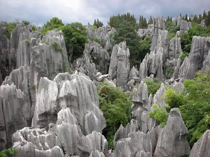 Каменный Лес – знаменитая группа формирований известняка, расположенных в провинции Юньнань в Китае. Высокие скалы возвышаются от земли в манере сталагмитов, похожих на ископаемые деревья, таким образом создавая иллюзию леса, сделанного из камня.