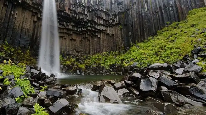 Скафтафелл – заповедная область в юго-восточной Исландии. Пейзаж очень подобен некоторым Альпам, но он был сформирован тысячи лет назад комбинацией вулканов и ледников. Область известна необычно приятным климатом и разнообразной географией, а также множеством водопадов, включая одноименный водопад и пещеры Скафтафелл.