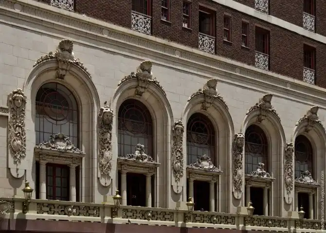 А это фасад соседнего отеля Адольфус, он чуть ниже, 95 метров и 20 этажей. Классическая кирпичная кладка, высокие окна первого этажа, разве не красота?