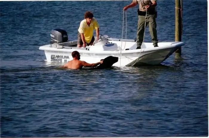 Когда Адам подплыл к медведю, тот уже не мог держаться на воде, лапы перестали его слушаться