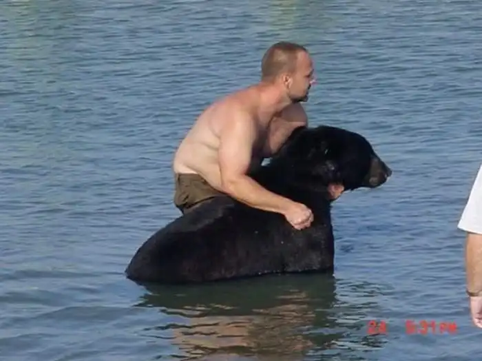 Мужчина практически не пострадал, если не считать царапин от лап медведя и порезанной ноги ракушкой