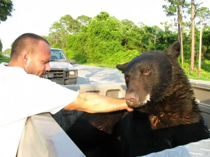 С помощью экскаватора, спасатели отвезли медведя обратно в Национальный заповедник Осеола