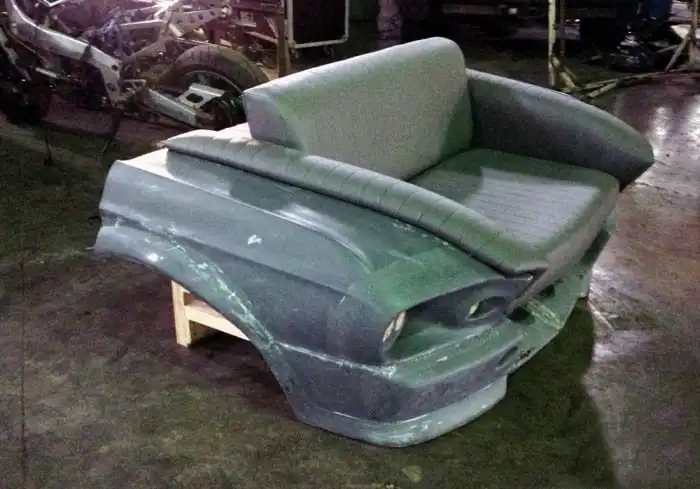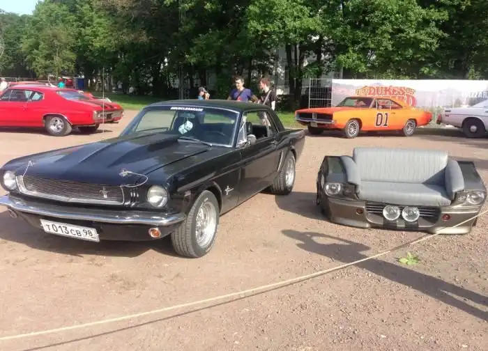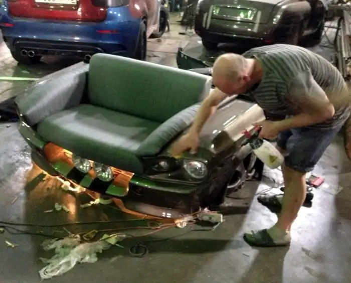 Все началось с того, что к нам в работу встал Ford Mustang Fastback 67-го. Задача стояла подогнать обвес Eleanor, как в фильме "Угнать за 60 секунд" 2000 года. Обвес был куплен владельцем этого авто в штатах и оказался достаточно кривым, не подходили практически все элементы. Перед тем, как взять авто в работу я решил глянуть в сети фотки, как именно должен стоять этот обвес. Ну и наткнулся на эту фотографию готового дивана.