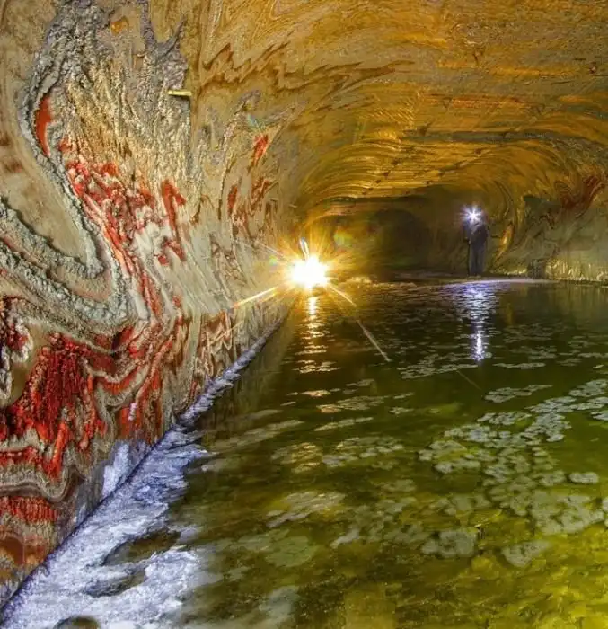 Эта удивительной красоты пещера расположена под Екатеринбургом, а ее стены покрыты психоделическими узорами соляных отложений различных цветов. На самом деле - красота этой соляной пещеры поражает каждому, кому довелось в ней побывать. На данный момент всего несколько шахт по добыче этого минерала продолжают работать, а остальные - уже несколько лет закрыты.