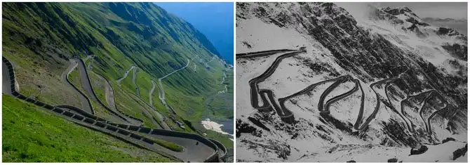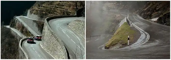 Это самая петляющая дорогая в Европе — она насчитывает 48 «шпилек», в некоторых местах дорога становится чрезвычайно узкой. Она тянется зигзагом почти на 1,5 км, а далее следует 275 метров более пологого спуска со множеством изгибов, которые по-прежнему держат водителей в напряжении.