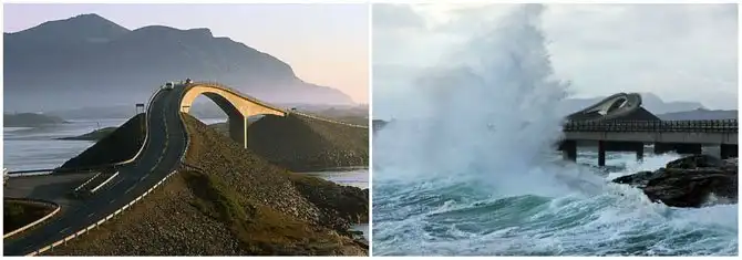 Атлантическая дорога протяженностью 8 км построена в Норвегии специально для туристов. 12 мостов, соединяющих островки вдоль северного побережья Атлантики, это маршрут для наслаждения красотой природы, свежим ветром и ощущением свободы.