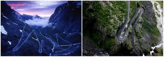 «Лестница троллей» , протянувшая среди горных вершин в норвежском регионе Вестланн, является одной из самых популярных достопримечательностей юго-запада страны. Узкая трасса длиной 106 километров — образец инженерного искусства: серпантин насчитывает 11 крутых поворотов. На некоторых участках ширина дороги не превышает 3,3 метров.