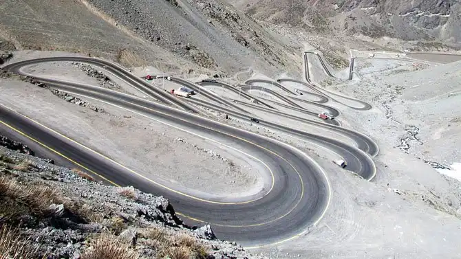 Эта дорога соединяет 2 страны Южной Америки — Чили и Аргентину. Она проходит по чрезвычайно крутому склону и имеет множество очень крутых поворотов, благодаря чему считается одной из самых сложных в мире.