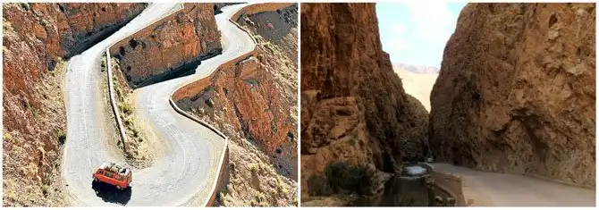 Дорога «Dades Gorges» в Атласских горах Марокко славится своими крутыми поворотами и смертельной опасностью.