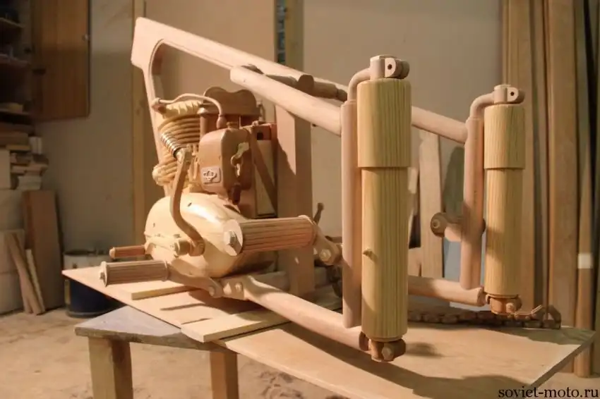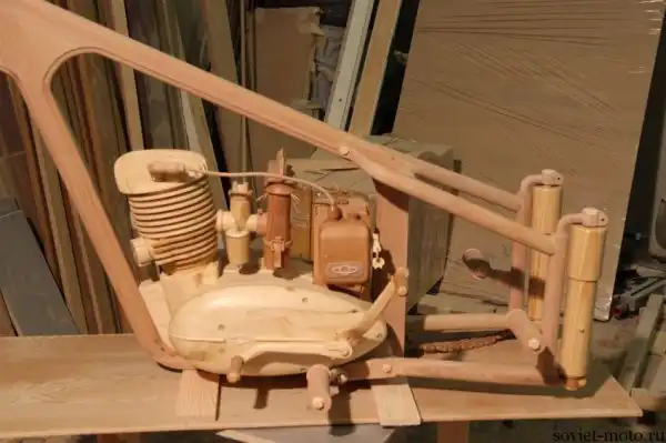 Работа над проектом началась 18 января 2014 года. День за днём продвигалась работа над созданием максимально точной копии классики советского мотопроизводства. Все детали мотоцикла, включая болты и прочие мелочи выполнены на 100% из дерева. При изготовлении использовались два вида древесных материалов: бук и сосна. Выбор пал на именно на эти ввиду их замечательного сочетания. Работа заняла у Юрия ровно 4 месяца, то есть была завершена 18 мая.