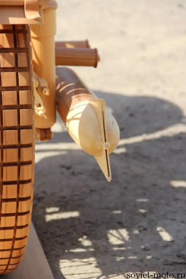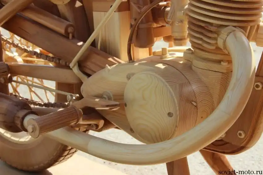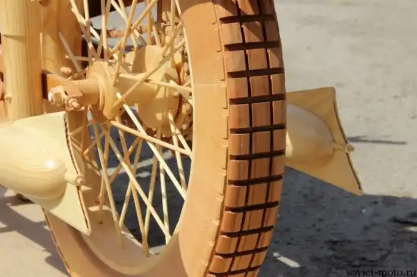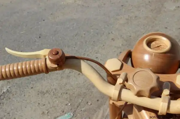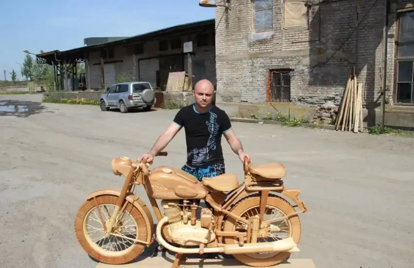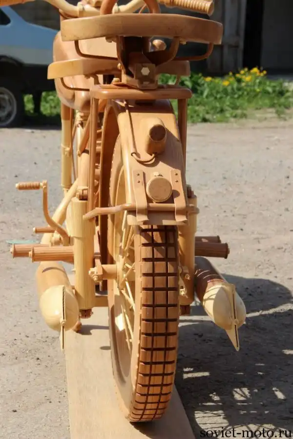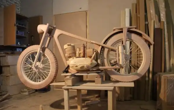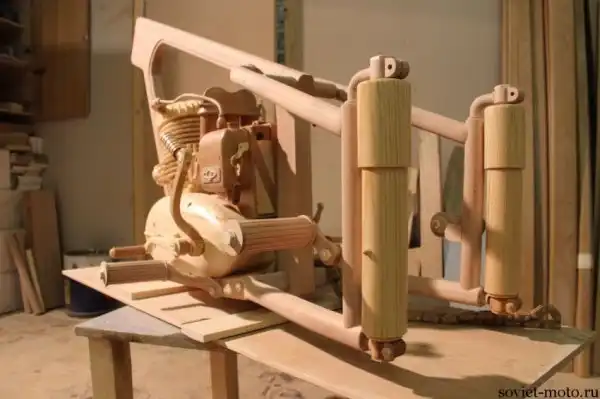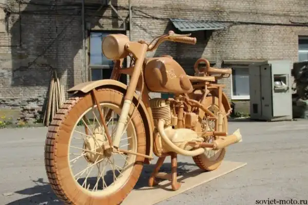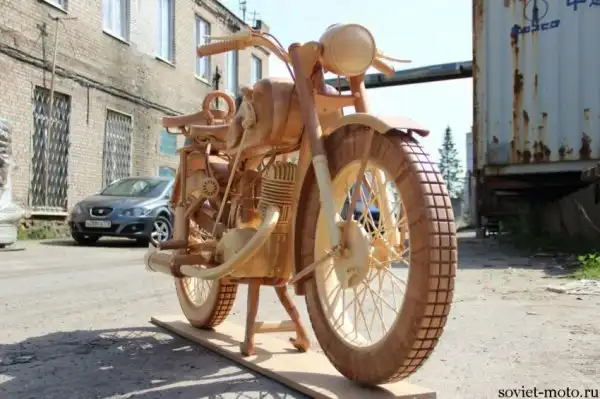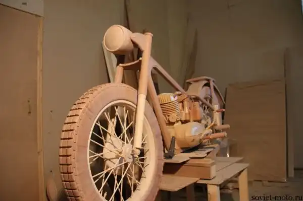 Идея создания точной копии легендарного советского мотоцикла ИЖ-49 из дерева появилась у Юрия Хвтисишвили после начала нового, 2014-го года. Работает Юрий в столярной мастерской и, так как работы в это время года было немного, он решил найти себе какое-нибудь интересное занятие в эти длинные зимние вечера.