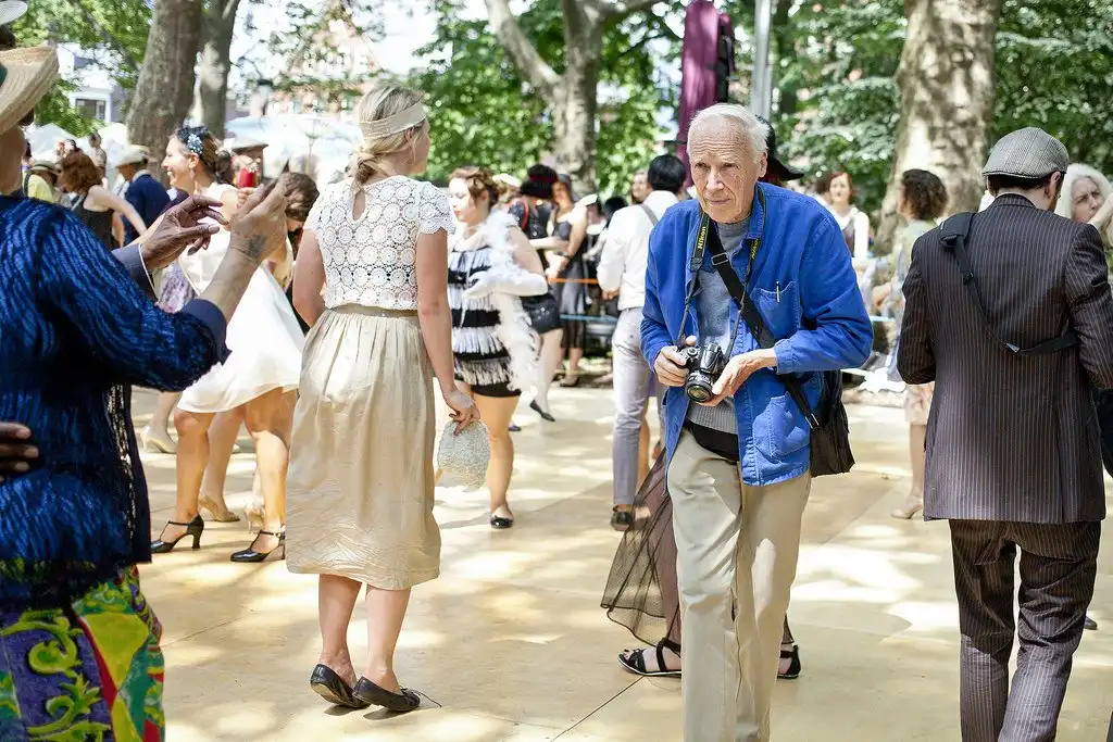 Дедушка с камерой это легендарный модный фотограф Билл Каннингем.