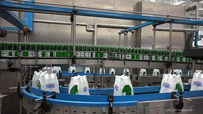 Линия группировки бутылок для дальнейшей упаковки.