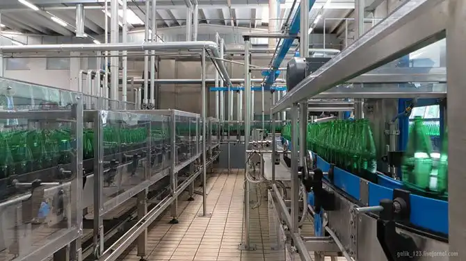 Завод по бутилированию воды был построен непосредственно рядом с источником для розлива воды в стеклянную тару. Вода поступает из недр земли самотёком, без применения насосов. На заводе в производственном процессе используются насосы.
