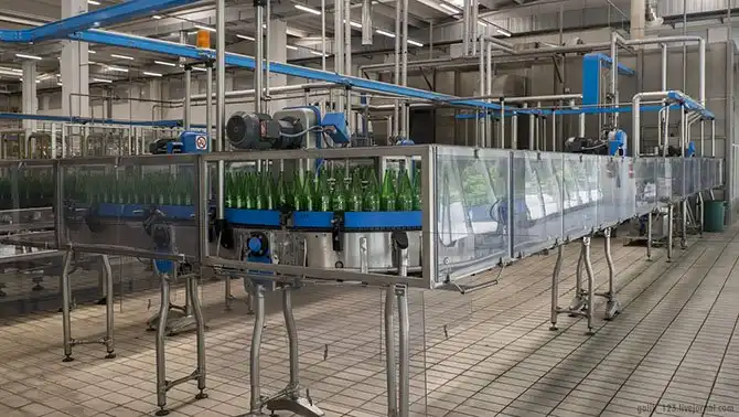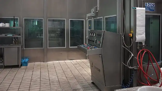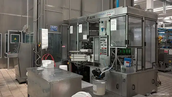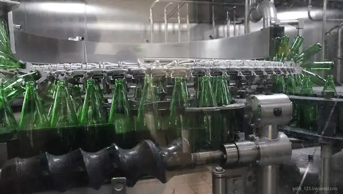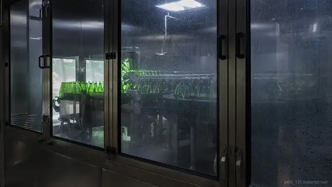 На этом этапе бутылки проходят три цикла очистки для их полной стерилизации.