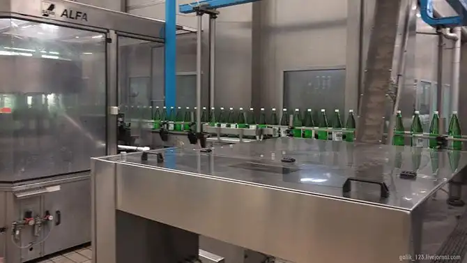 Первая стадия заключается в промывке бутылок водой источника, обладающей дезинфицирующими свойствами.