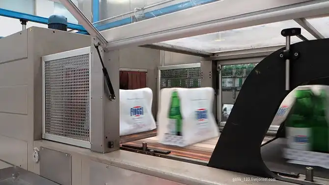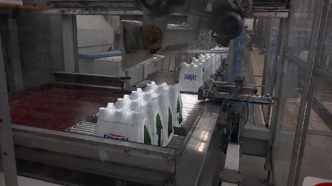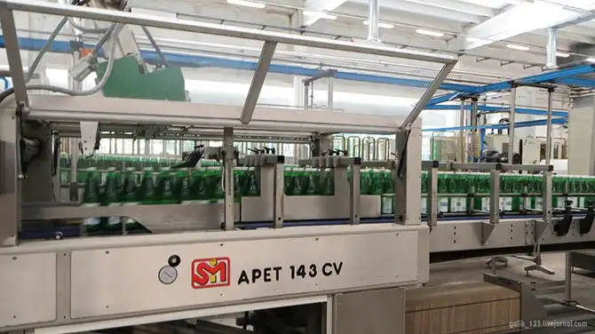 Упаковка бутылок по 6 штук термоплёнкой.