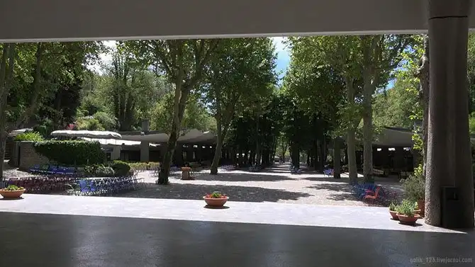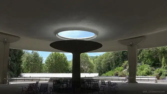 Характеристики воды из питьевого фонтанчика в крытом павильоне самые лучшие, так как он расположен ближе всего к природному источнику. ОВП воды этого фонтанчика составляет -34 мВ. На фото – ближайший к источнику фонтанчик с водой, который можно найти около панно на стене в павильоне.