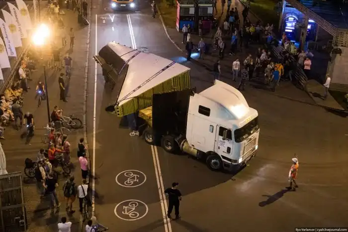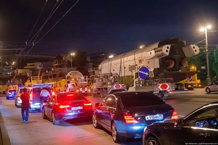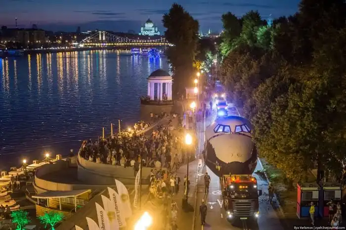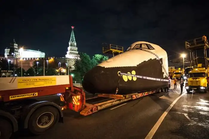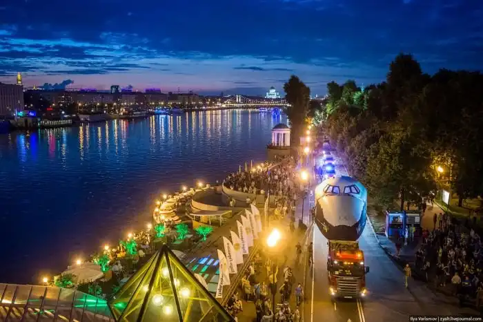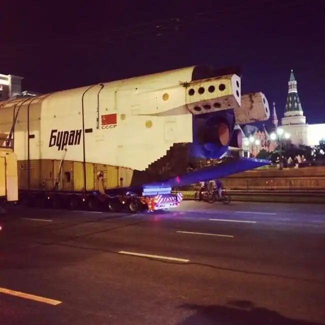Ночью с субботы на воскресенье в Москве была проведена настоящая инженерная спецоперация, во время которой из Центрального парка имени Горького на ВДНХ по улицам столицы был перевезен 50-тонный космический челнок "Буран".