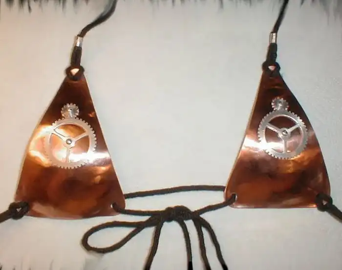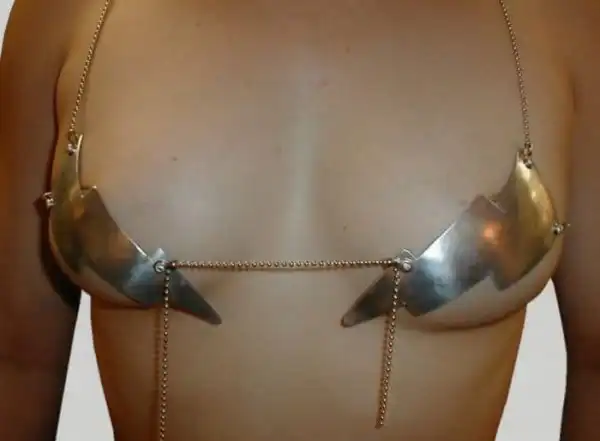 В одной из социальных сетей я абсолютно случайно нашел страничку одного необычного мастера, который уже не первый год производит своими руками вот такие необычные женские бюстгальтеры. Что же в них такого особенного? А все дело в том, что называет он их - бронелифчиками, и сделаны они в основном - из металла.