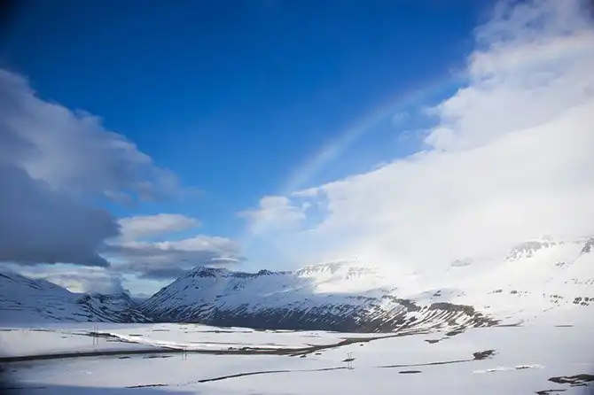 Пейзажи на севере Исландии напоминают полотна Рериха: горы и небо ярких пастельных цветов выглядят как нарисованные.