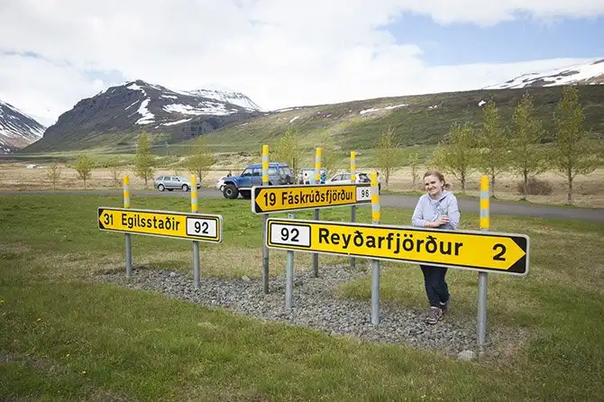 Мы редко пытались прочитать название города, в который ехали. Но, благо, нам и не приходилось, так как все, даже небольшие, дороги в Исландии имеют номер, а указатели встречаются на удивление часто, так что заблудиться здесь сложно. При этом тут попадаются знаки, которые вы вряд ли встретите в России и которые не раз заставляли нас посмеяться: низко летящий самолет, сильный ветер, скользкая дорога, всадник, падающие с гор камни и, конечно же, все виды встречающихся здесь животных.