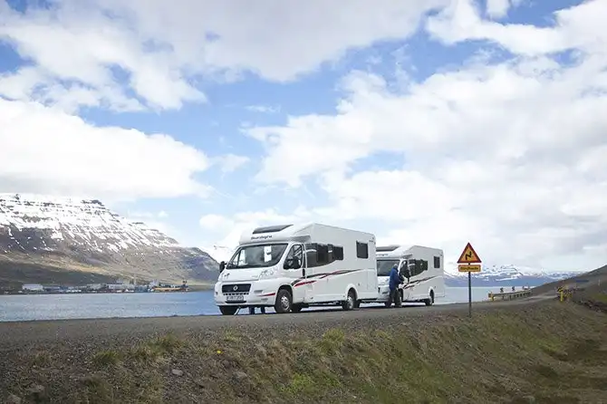«Дом на колесах» — часто встречающийся здесь вид транспорта. Многие туристы берут их напрокат и так путешествуют.