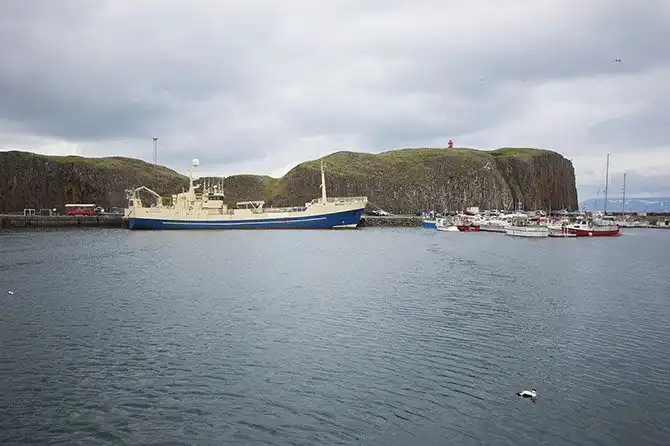 Западный полуостров, или Вестфирдир, очень большой, и на него нужно выделять несколько дней. Мы доехали лишь до Стиккисхольмюр на полуострове Снайфедльснес — это маленький красивый городок, где можно легко подняться на фьорды, посмотреть на маяк и Атлантический океан.