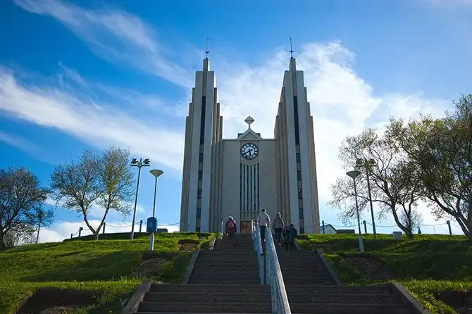 В «северной столице» Исландии, городе Акюрейри, главной достопримечательностью также является местная церковь. О ее отношении к религии можно угадать только по возвышающемуся над входом кресту.