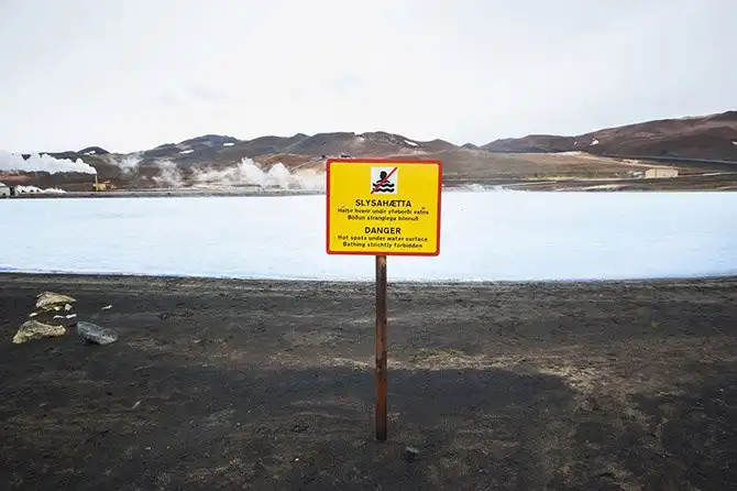 Недалеко от Миватн находятся горячие источники и залежи серы.