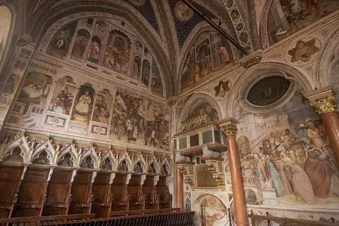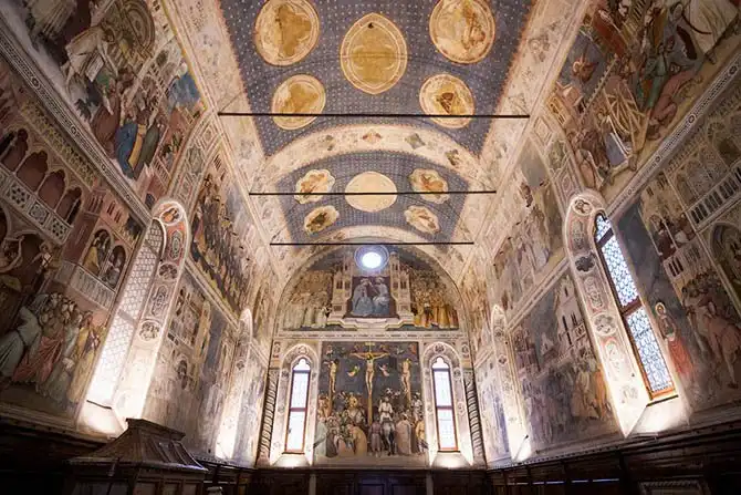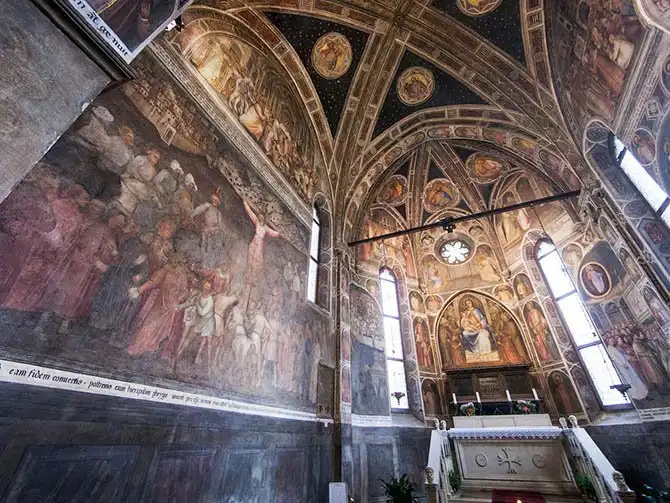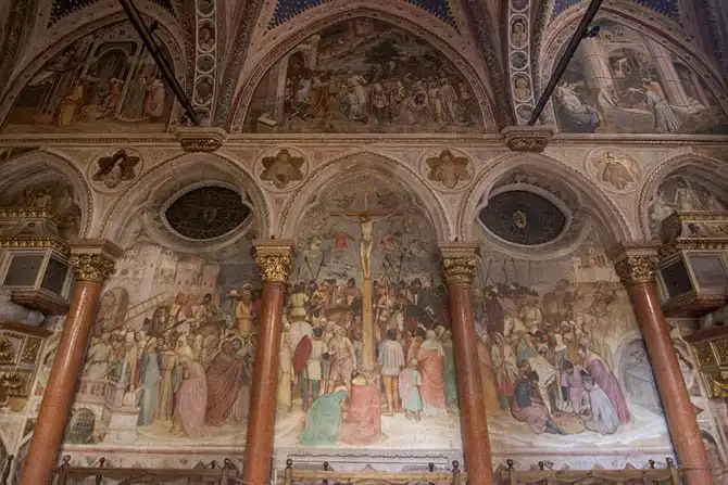 Художник создает потрясающий фресковый цикл. На контрфасаде изображены сцены из Нового Завета. Сюжеты правой стены посвящены житиям Св. Георгия, левой – Екатерины Александрийской и Луции Сиракузской. В алтарной части находится фреска «Распятие», считающаяся одной из наиболее выдающихся произведений итальянской живописи XIV в.