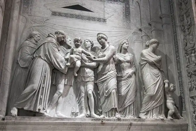 На следующем фото – барьельеф “Чудо с сердцем скупца”, работа Туллио Ломбардо.