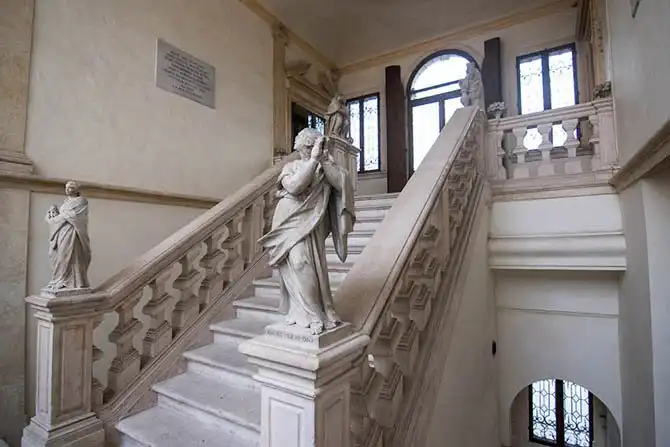 В XVIII в. лестницу, соединяющую церковь с залом и внутренний двор перестраивают по проекту Джованни Глориа.